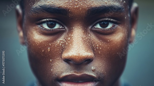 Close up portrait of a sweaty young man