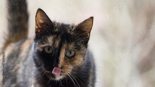 Close up Portrait of colored cat looking in camera, Sochi, Russia.