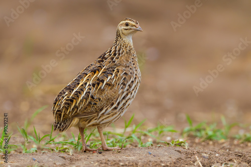 Close up portrait of female Rain Quail (Coturnix coromandelica)