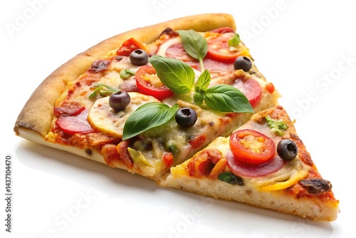 Close up shot of two slices of pizza with toppings on a white background ready to be served now fast food, Photos, Standard Content, isolated Assets, isolated, Horizontal,