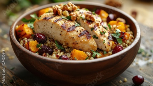 Close-up chicken bowl Grilled chicken salad bowl healthy food