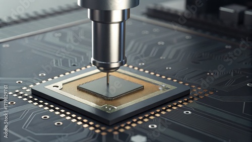 Close-up Detail of Microchip Manufacturing Process and Defect Inspection