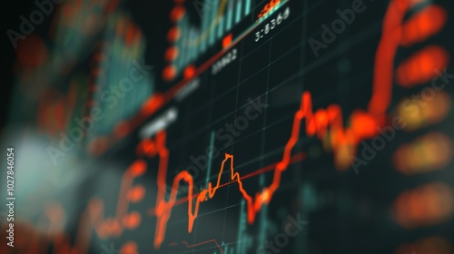 Close-up digital screen with rising red lines graph symbolizing inflation and interest rates, economic growth and monetary policy concept.