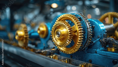 Close-up industrial gears in motion