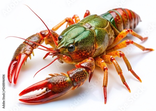 Close-up Live Crayfish Isolated on White Background - Low Light Photography Stock Photo