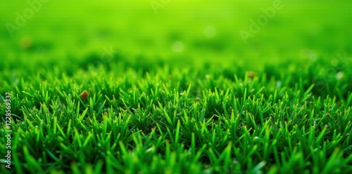 Close-up, lush green golf course grass texture, environmental, vegetation