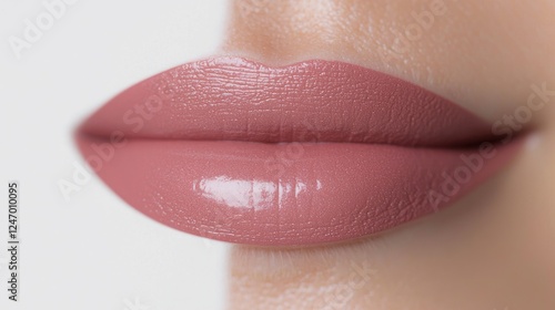 Close-up nude lipstick, smooth texture, beauty shot