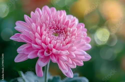 Close-up of a beautiful pink dahlia flower in full bloom with a blurred background