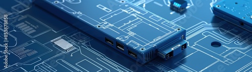 Close-up of a blue printed circuit board with electronic components, representing technology and hardware engineering.
