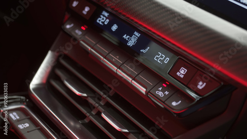 Close-up of a car's dashboard showcasing the sleek interior design and modern controls. Perfect for highlighting automotive interiors and cutting-edge technology.