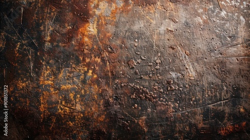 Close-up of a corroded metal texture with grunge elements, featuring a mix of rust, scratches, and weathered paint for a vintage industrial look.
