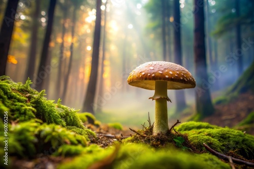 Closeup of a mushroom in a misty forest ambiance natural texture forest wonder detail macro forestry botanical plants organic earthy ambiance mystical fungi details foreground focus
