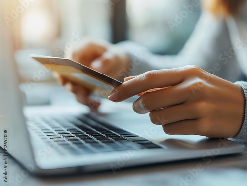Close-up of a person's hands using a smartphone while working on a laptop, symbolizing online shopping and digital convenience.