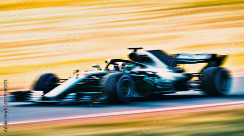 Close-up of a racing car speeding on the track with motion effect and vibrant colors, showcasing speed, adrenaline, and high-performance motorsports competition.