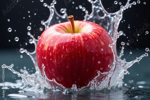 Close-up of a red apple splashing into the water.