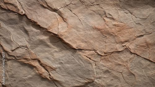 Close-up of a rough, uneven rock face with deep fissures and varied light brown tones. Intricate patterns of cracks and layers