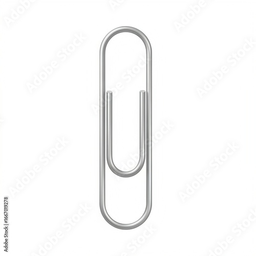 Closeup of a silver paperclip isolated on white background, a simple office supply