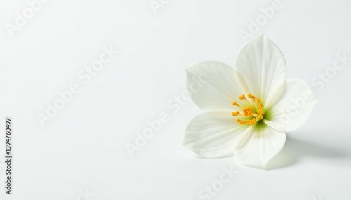 Close-up of a single white flower isolated on white, aesthetic, studio shot, photography