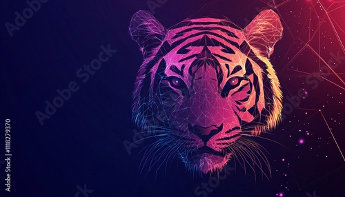 Close-up of a vibrant tiger face showcasing digital artistry, merging wildlife beauty with themes of animal digital evolution in a captivating visual narrative.