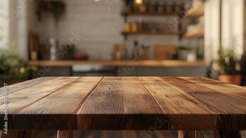 Close-up of a Wooden Tabletop in a Rustic Kitchen Setting