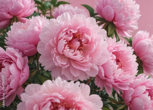 Close-up of clustered pink peonies, soft pink backdrop , blossom, floral
