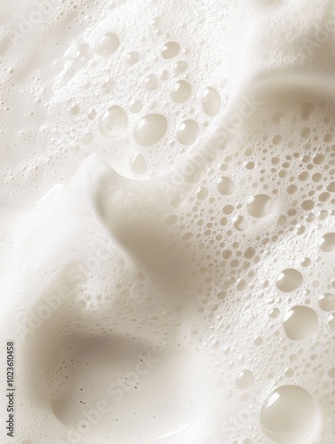 Close-up of creamy milk foam with bubbles creating a soft texture.