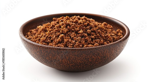 Close-up of Dark Brown Granular Material in a Rustic Bowl