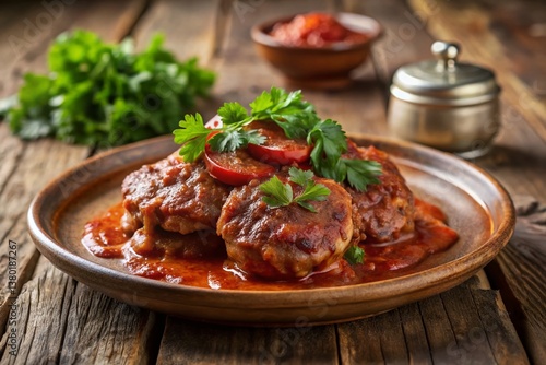 Close-up of Delicious Beef Liver Patties with Tomato Sauce
