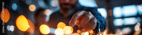 Close-up of Hand Interacting with Illuminated Surface