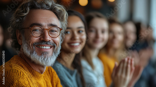 Close-up of multigenerational team clapping hands with joy and respect in white studio space