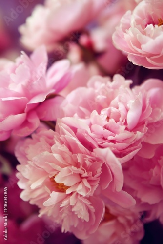 Close-up of Pink Peonies in Soft Light, Floral Arrangement, Delicate Petals, Romantic, Wedding Flowers, Springtime Bloom, Elegant