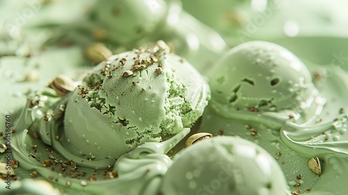Close-up of Pistachio Ice Cream, 8K Realistic Lighting