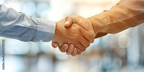Closeup of professional handshake in corporate setting symbolizing partnership agreement. Concept Corporate Partnership, Professional Handshake, Business Agreement, Office Collaboration