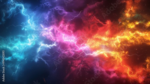 Close-up of Red and Blue Lightning in Stormy Sky.