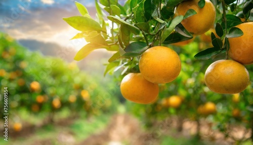 Close-up of ripe oranges hanging on a tree in an orange plantation garden 1