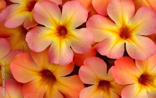 Closeup of Vibrant Peach and Yellow Flowers, Detailed Floral Macro Photography