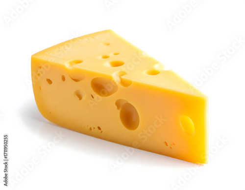 Close-Up of Yellow Swiss Cheese with Holes Isolated on White Background