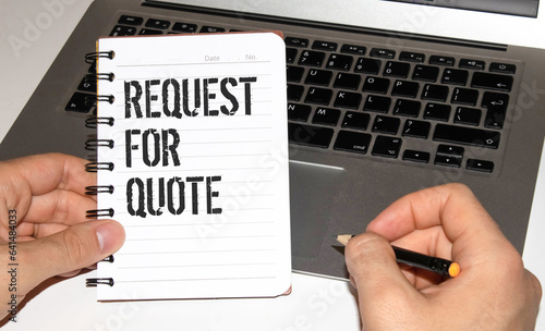 Closeup on businessman holding a card with REQUEST FOR QUOTE message