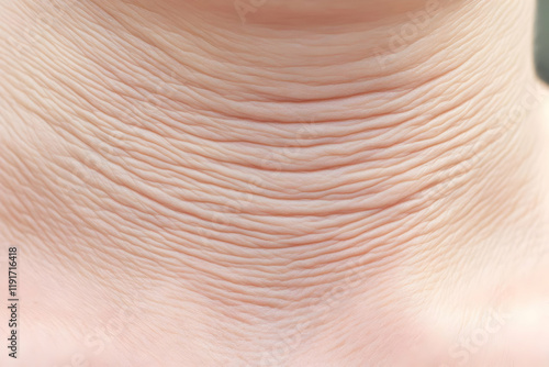 Close-up Photo Shows Deep Wrinkles and Creases on Aging Skin of the Neck, Highlighting Texture and Loss of Elasticity.