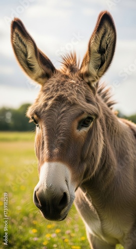 Close-up portrait capturing the essence of a thoughtful donkey in nature