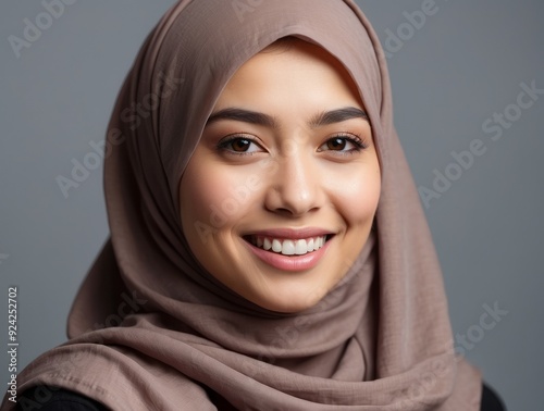 Close-up Portrait of a Smiling Woman Wearing a Headscarf