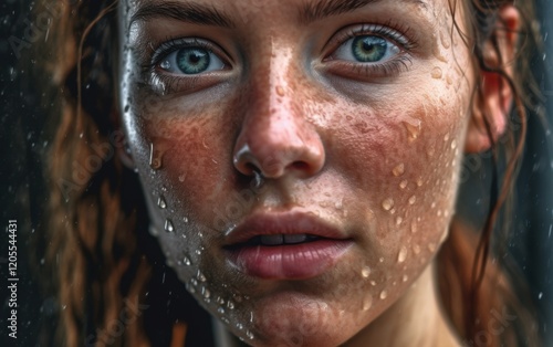 Close-up Portrait of a Woman with Water Droplets on Her Face