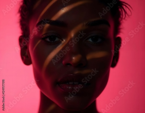 Close-up portrait, young man, intense gaze, dark skin, mohawk hairstyle