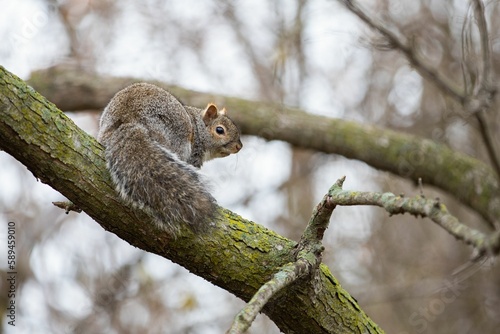 Closeup shot of a cute squirrel on a tree