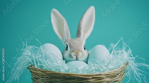 Close-Up Shot of Easter Eggs in a Basket with a Cute Bunny