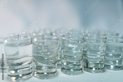 Close-up shots of a luxurious transparent tequila in a bar on a white background
