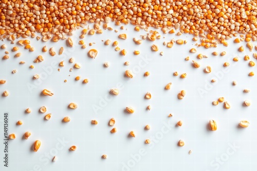 Close-up View of Raw Yellow and White Corn Kernels Spread on a Light Surface Creating a Beautiful Textured Background for Food Photography