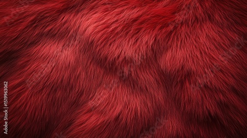 Close-up view of red fur. Natural texture from dyed animal pelt. Soft hairy surface in vibrant red tones. Luxurious background, fashion design, warm clothing, winter wear.