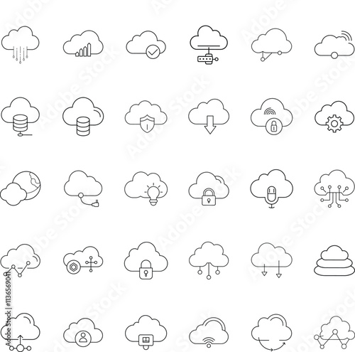 Cloud Computing Icons Network, Data, Security, Storage, and More