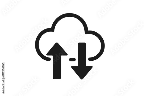Cloud computing tech icon for data transfer, download, and upload. Simple vector symbol for online storage, web server connection, and file sharing. App button pictogram design.
